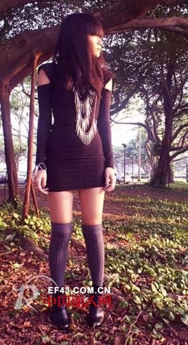 上阵来一件紧身迷你裙+厚实的及膝袜,在秋日的天气里,真的很有味道。