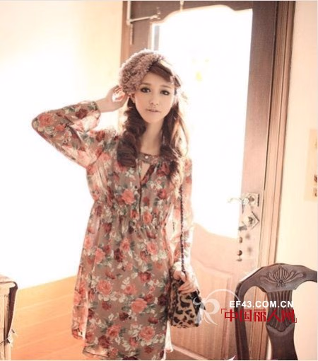 带有玫瑰图案的玫瑰红雪纺,肩背黑色豹纹包,头上弄个大波浪卷,性感魅力显出来。