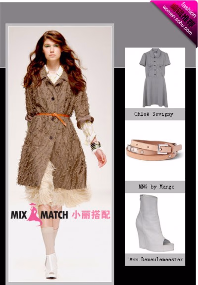 时尚解析:双层衬衫裙叠穿,上身羽毛的设计很飘逸。选择一款细腰带收敛腰身,做出裙摆的感觉,搭配干净的白色及踝靴更衬托出青春靓丽。