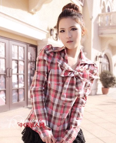 蝴蝶结格子衬衫,立体感十足,无敌可爱,让你穿出是不同的感觉哟,讨人喜欢的样子你也一定会喜欢的,春季必备的百搭款式哦。