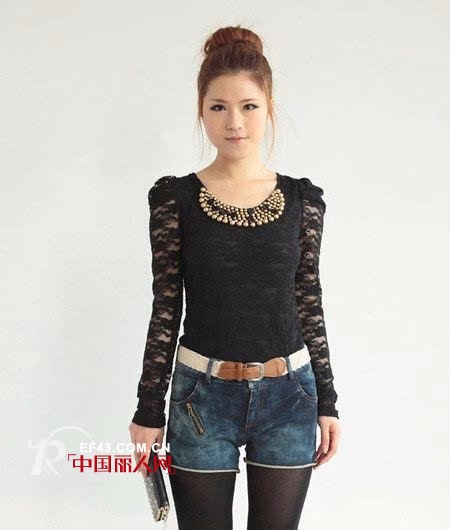 蕾丝泡泡袖T,全蕾丝的打底T,时尚的泡泡袖也可以单穿的哦,领子上的串珠也是很好看的哦,喜欢的不要错过哦。