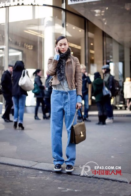白色衬衫+宽松款牛仔裤+机车款上装,很摩登的时尚潮人!酷帅的外表一点不逊色于男生哦!