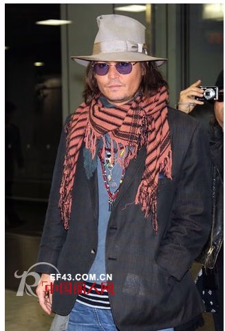 混搭还是混搭,粗麻质的三角围巾和紫色墨镜,也许你想都没想到过这样的组合。但是到了约翰尼-德普身上确实那么搭调,是不是还有些许杰克船长的影子。