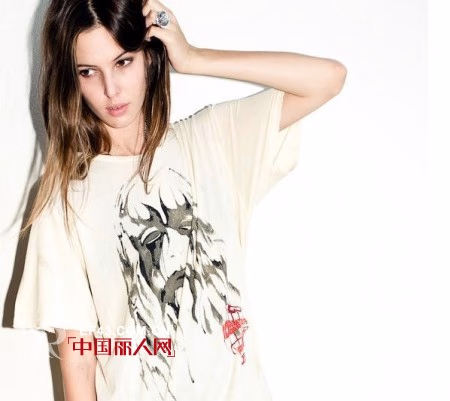 带有一点点豹纹的白色休闲衫穿着于她身,性感迷人