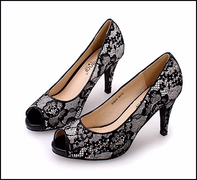 蕾丝印花无形中将这款鞋子点缀得极尽女人风情,电镀细高跟再与蕾丝呼应,温柔中透出丝丝妩媚动人气质。经典的鱼嘴设计,让你露出的脚趾仿佛被蕾丝包裹,分外妖娆,尽显女人的性感妩媚。