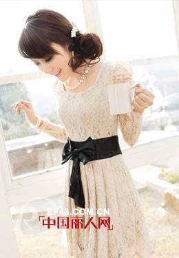 蕾丝镂空的元素是甜美女生最佳的选择,想要回归学生时代的清新装扮的话,蝴蝶结连衣裙最能装扮出俏丽甜美的风格。