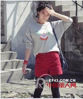 灰色的底色,小丑的图案显得非常可爱甜美而不觉滑稽,彰显个性之余,还非常百搭;红色的小短裤也增加了抢眼的元素哦。