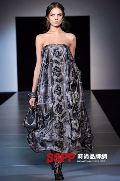 GiorgioArmani女装2011秋冬时尚秀场--续弧形下摆的长大衣、灯笼形的蓬松裙摆……这一季的乔治·阿玛尼(Giorgio Armani)女装里充满了柔和的曲线,柔软闪亮的丝缎、天鹅绒面料,淡淡的裸色、粉色,精致繁复的珠宝装饰,华丽浪漫中带着一点慵懒。女性|mgsrchttpsom大衣灯笼乔治阿玛尼gini