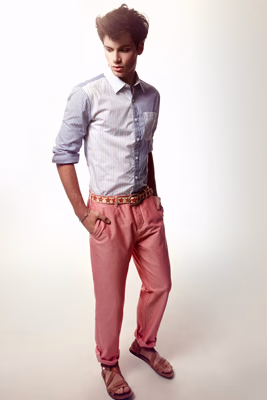 衬衫搭配亮色裤子是今季主打,蓝色,黄色,甚至是红色,都可以挑战看看,当然,亮色裤一定要修身,一肥大就丑了。
