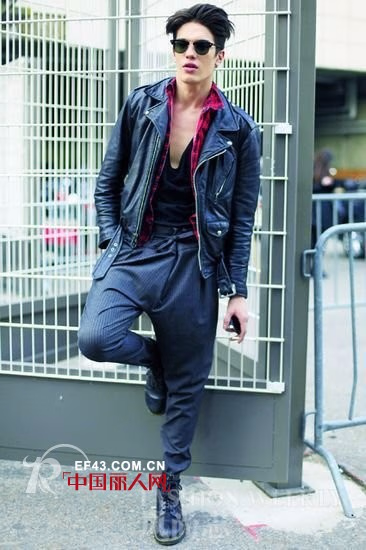 黑红格子衬衫配上黑色机车皮衣,再加上一双马丁靴,这位型男俨然朋克风格的绝佳代言,无论他手里拿的是机车钥匙还是跑车钥匙,都能让从Hermès秀场走出来的女麻豆们心甘情愿的Need a ride。
