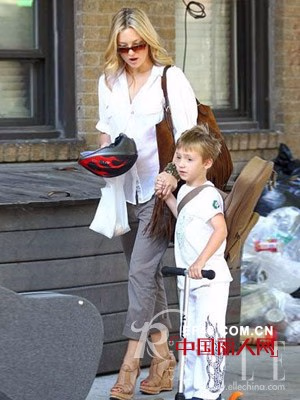 莱坞甜妞儿凯特-哈德森白色的半透视衬衫今年夏天十分流行,大走性感透视路线,翻边形成的七分裤效果搭配上坡跟的凉鞋看起来十分和谐完美。