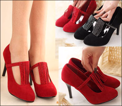 磨砂质地的单鞋,本来简单又朴素,几条细细的镶着水钻的带子穿搭在脚背上,一下子味道十足,有时候一双鞋子的魅力就来源于小小的几根带子。