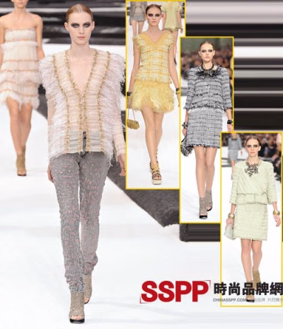 巴黎大皇宫–CHANEL发布2011年春夏高级成衣系列。走进秀场,映入眼帘的一个由三个喷泉,黑色火山熔岩石和白色细沙组成的黑白色调的大花园。而本次巴黎大皇宫的秀场有84位模特相继出场,是近年来发布会中模特人数最多的一次。其中,三位超模分别象征了三个不同时期的香奈儿历史。InèsdelaFressange,80年代超模的典范;StellaTennant,90年代超模的代表;FrejaBehaErichsen,当代的超模偶像!值得一提的是,本次发布会现场的音乐是由一支80位音乐家组成的管弦乐队现场演奏而成,由ThomasRoussel编曲并指挥。