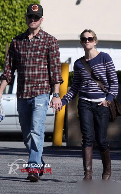 条纹元素是经久不衰的元素,蓝白色的条纹针织衫下搭深蓝色牛仔裤,倍显青春,减龄不少。