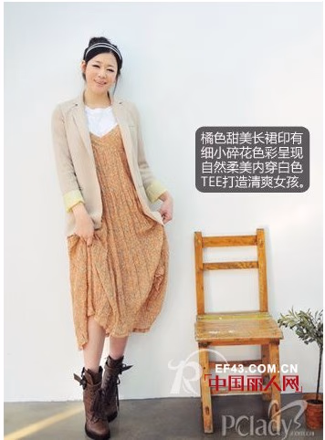 西装+长裙米色西装外套长版型+七分袖柔美大方。垂地长裙2011春夏流行新趋势,淡雅橘色清秀甜美。彼此呼应平衡。无论腰身、臀部还是大腿身材问题统统解决。