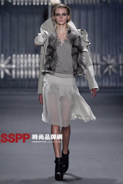 用硬朗而温暖的派克大衣(Parka)搭配轻盈礼服,2011秋冬纽约时装周上,有不少设计师都爱上了这种做法,王薇薇(VeraWang)2011秋冬女装秀场上同样是这种有着强烈矛盾感的搭配。上世纪30年代的美式贵族风韵在王薇薇(VeraWang)秀场上并不意味着华丽的装饰,只有纯净色彩之中的皮草元素和多变的褶皱,在“硬”与“柔”的对比中诠释浪漫与高贵。