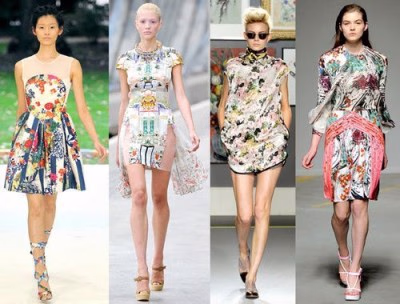 2011春夏的花卉图案不再抽象,充满了装饰性,抑或复古,抑或田园。即便在创意为先的伦敦时装周,我们看到的也都是具象的花卉,同时呈现的方式极为艺术。崇尚实用主义的纽约似乎对花朵的热情不够高涨,但晚装上的印花图案与其它三大时装周遥相呼应。巴黎的印花更为放松和惬意,不像米兰的密集爆炸式,但目光所及之处,也总有“几朵绽放”。