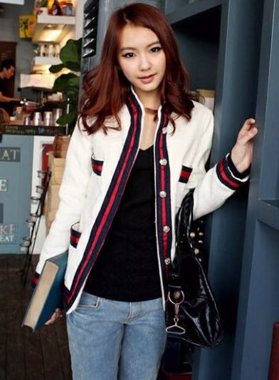 经典的香奈儿海军风外套,永不过时的经典款式,短款修身的设计,让你的身材看起来更纤细。