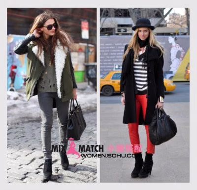 时尚解析:紧腿裤+短靴向来是大秀纤细双腿的搭配妙方。红色元素的巧妙加入为整体造型感加分不少,不会显得过于艳丽,又绝对有亮点突出,不俗气!