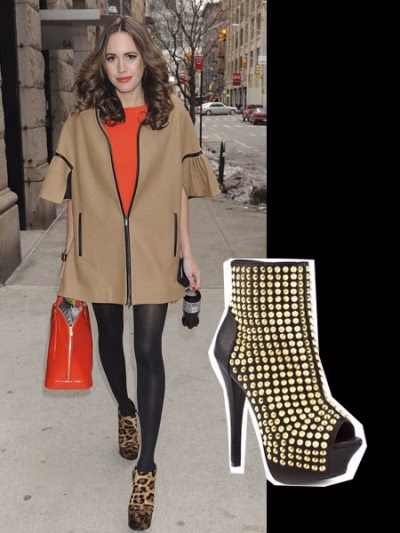 羊羔毛翻领麂皮斗篷大衣太适合布莱克-莱佛利了,这丫头自从演了《绯闻女孩》,时尚品味直线上升,棕色及踝靴棕色丝袜真是低调诱惑!