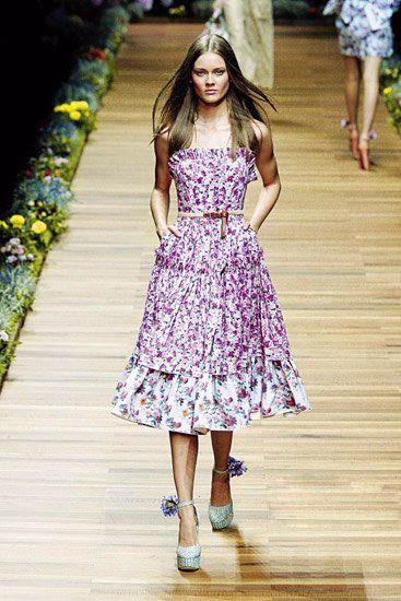 年年岁岁花相似,繁华盛放的季节当然少不了花卉主题,它代表着男人特别喜欢女人维持的那款姿态:娇柔而不媚俗,灵动又不失甜美。其实,我们对男人也有类似的要求,不过那却是比较难被批准的妄想而已。涉及到印花图案,绝对不能不看D&G、KENZO、ANNA SUI和ETRO,他们各自代表着不同领域的花色世界,功力各有秋千,但整体来看,今年不可小觑的都是关于田园花色的描绘。应该是跟业界大吹自然风有关系,可爱的小碎花和大朵写实的花卉图样都值得收藏,它们纷纷铺开盛放在吊带背心裙、连身裤套装之上,在款式上并没有太多突破。反而在色系搭配上有点小惊喜,譬如运用了古典色彩的黑色与花纹糅合,展现出颇有新意的一股魅惑之感。