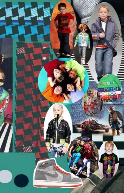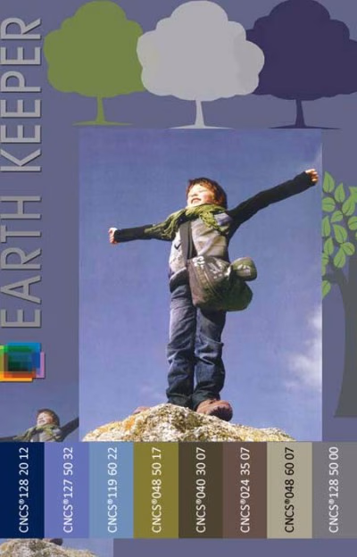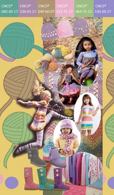 2011/12秋冬童装色彩指导:礼仪学校,回归校园;女装:拼贴公主装、浓郁的中间色调回荡在神秘的相近色之间。男装:地球卫士,绿色生态的核心;反斗神鹰,时髦炫耀、大胆创新、生动鲜活。