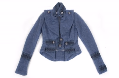 这件蓝色收腰短夹克,来自Vita秋冬系列。Malin Bengtsson毕业于La Chambre Syndicale de la Couture Parisienne(巴黎制衣公会学校),Yves Saint Laurent也是此间的毕业生。从漫长的服装历史中找到发力点,看来也是这所学校的传统。因为这件蓝色夹克的领口和袖子,分明就有着19世纪男装外套的影子,只是过去的紧身马甲被和外套做成一体的马甲式前襟取代。而外套下摆的弧线造型,也带着文艺复兴时期男装的影子。MalinBengtsson为这件夹克所做的广告造型,是在其下配了条纹针织legging,加上与外套同种面料的两侧开衩围裙。而那双针织legging,同样也神似文艺复兴时期的男性穿着。当然,这样的穿凿附会,并不意味着Vita的外套是一味走的复古路线。事实上从男性着装上吸取元素,从Coco Chanel、Yves Saint Laurent开始,就已经是为女装带来新风貌的方法。当男装的形式感被运用到女性着装,获得的却是另一种女性印象。在Malin Bengtsson看来,夹克衫在如今可以被穿着到任何场合,其优雅与干练足以征服所有在座的绅士名媛。难怪这个秋冬系列的夹克,会获得瑞典公主马德琳公主的青睐。