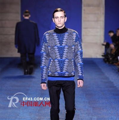 范思哲(Versace)2011秋冬男装在“立体感”面料上大做文章:黑色皮革上布满细小的圆点或水滴状立体花纹,而凸起的V字形线条看上去有盔甲般的硬朗感。针织衫上则是凸起的反色黑、白色十字形纹样或是与面料同色的圆点……2011春夏范思哲(Versace)秀场上的“乡村摇滚男孩”们,这一季重新回到了双排扣西装、宽松茧形大衣营造出的严肃绅士路线上,用暗色西装搭配亮色皮手套的做法,优雅中仍然暗含了些许前卫。