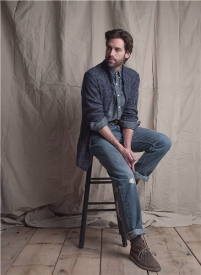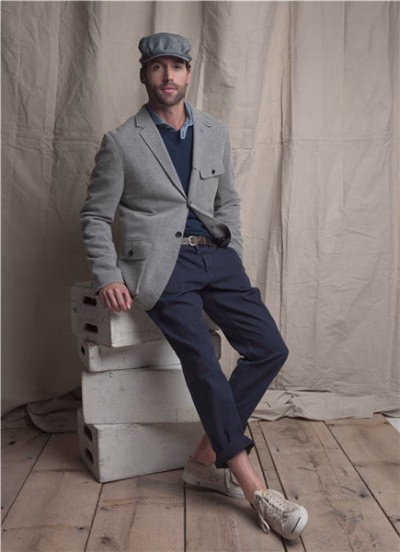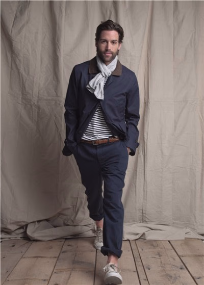 男装系列以厚实的斜纹西装、休闲卡其裤和棉质金属感衬衫打造整体造型。值得一提的是细节的设计和面料的混搭。山羊绒西装外套在云石海军蓝色的衬托下,更显时尚气息。条纹粗密布的运用则是衬衫及配饰的亮点。