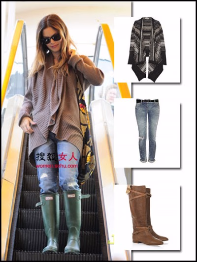 搭配建议:蝙蝠袖设计的开衫式毛衣适合喜欢夸张和街头化打扮的艺术风格的女性,这件毛衣的半身设计就很个性。在超大领口的毛衣里面搭配一件独具特色的花领衬衫,让你的张狂不羁中加一丝丝的甜美可爱感,而这种偏韩国服饰感的设计更受MM们的喜爱,一条腰带束在毛衣外面,系在腰部最细的部分展示优雅,搭配长靴让你的腿部更纤细修长。
