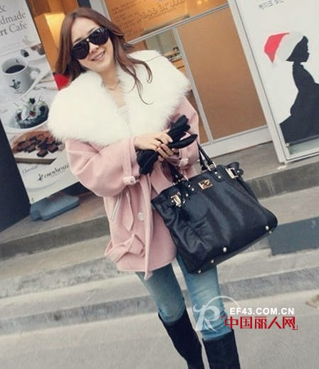 韩版时尚带毛翻领纯色加厚 外套,大大的翻领超有范儿哦!