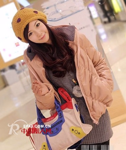 棉袄看上去就是暖暖的感觉,简单的款式,用了菱格纹路的走线压棉设计,给本来很简洁的款式加入了特别的元素。