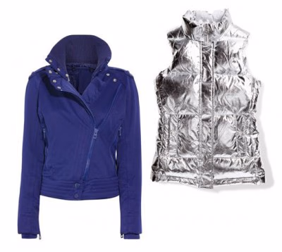 左:宝蓝滑雪夹克 Adidas by Stella McCartney;右:耀目银色马甲 Michael Kors