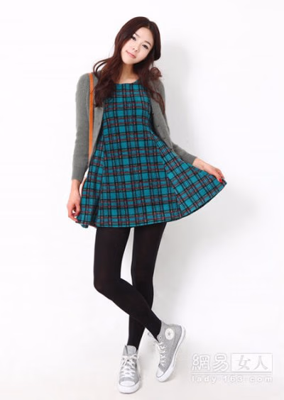 夏衣冬穿!清丽的格纹短裙,混搭毛衣和外套,时尚指数飙升。