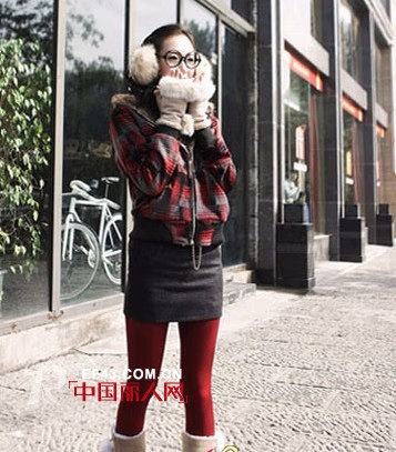 红格子的外套和搭配的红色内搭裤让人眼前一亮,毛毛球的配饰是冬日时尚MM的必备单品之一。