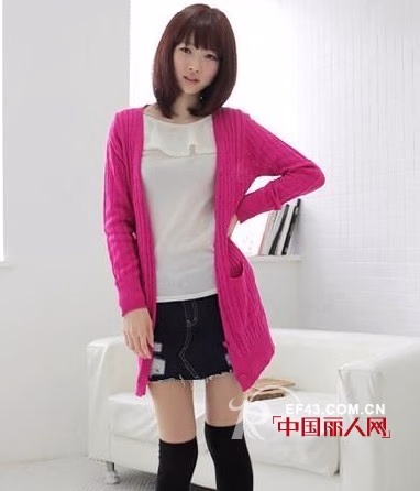 宽松式的毛衣开衫很有造型感,需注意的是在下装的搭配时最好选择紧身款,弥补宽松上衣遮掩的线条,来修饰自己的身材缺陷。