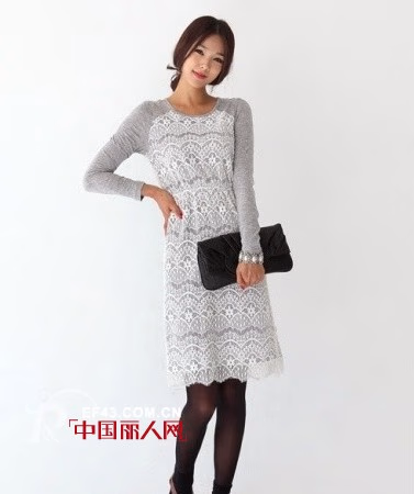冬季穿上这样一条灰白搭的连衣裙更显你的浪漫情节哦,前身半透的蕾丝装饰看起来就很纯美,作为内搭还是直接外穿,都很好看。