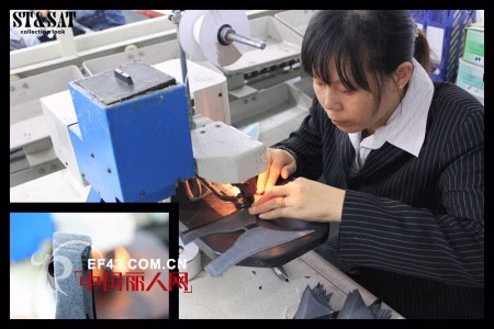 一双鞋子的产生,从无到成型,可分为三大步骤。首先是准备组,是做辅料的准备、中底、大底、鞋撑、鞋底印LOGO等半成品的准备。然后就到针车部,主要是操作鞋面成型的。最后到成形部,负责把鞋面、中底、大底相结合,做出一双鞋子来,最后再做包装。每个品牌生产鞋子的流程大抵也分这三个步骤,现在,我们就来看看星期六女鞋(ST&SAT)更为出众的地方。