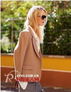 西装外套披在身,搭配同色系格纹长裤,温暖的色彩减少了那分率性,增加了一分知性感