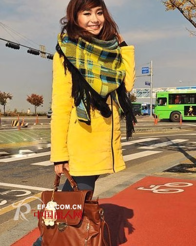 很亮眼的一款黄色的棉服,搭牌的衣服会看起来超有美感的哦