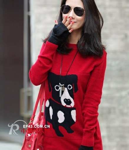 韩范十足的狗狗图案长款毛衣。经典可爱的图案设计,熟女大爱的减龄款式,怎么穿都好看呢。