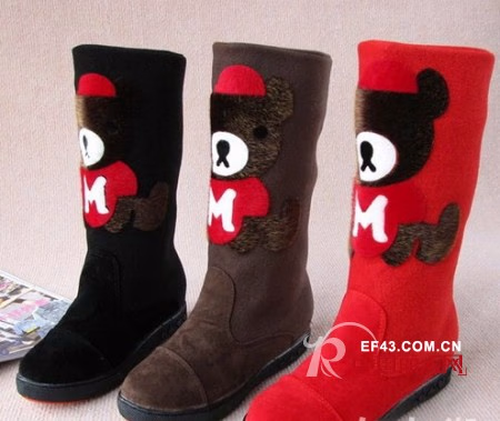 日韩系可爱小熊呢子面舒适平跟中高筒靴,超可爱的小熊靴子,呢子材质保暖又柔软很舒适哦。