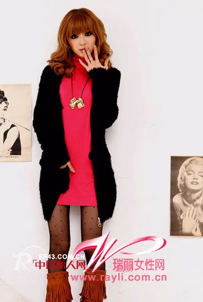 毛线茸茸长款大衣,内搭紧身连衣裙,美丽不“冻”人哦!