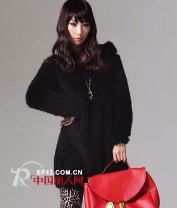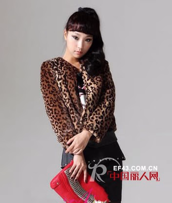 气场豹纹皮草外套+钻石花苞短裙+亮红摇滚机车手拿包
