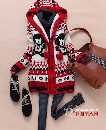 精美立体的钩织图案,俏皮的卡通气息,简约而不凡时尚感的长款毛衣,立体的图案拼接,有点甜美的圣诞味道,自然随意超级轻松。