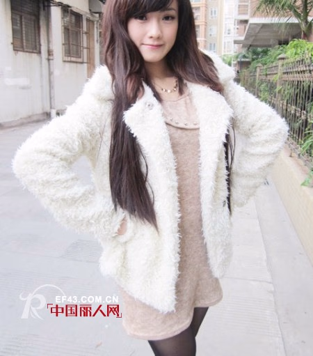 厚厚毛绒绒的外套,如果冬天不想太沉闷了,选择了浅色系的外套。毛毛看到没。嘻嘻今年绝对是必备的哦!