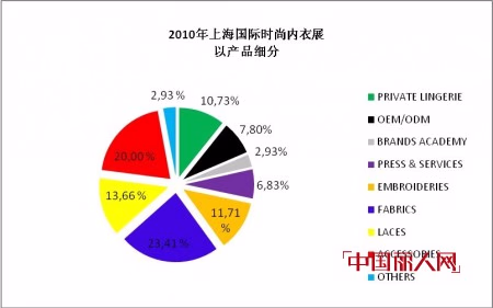 图例依次是:品牌内衣沙龙、贴牌生产和自主研发设计、名品学院、媒体、刺绣、面料、花边、辅料、其它
