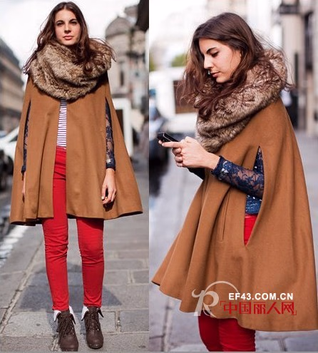 可爱的斗篷衣不但拥有怪异可爱的设计,同时将手臂、肩膀、臀部和大腿都藏在大衣里的设计,是许多身材略胖的女性的必选单品,减龄还收身,谁不爱?