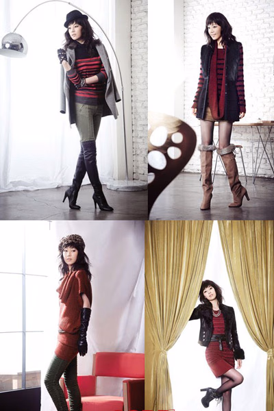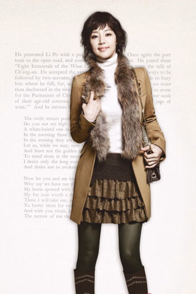 充分吸纳最新时尚设计情节,将刚柔、浪漫、淑女、潮流四种不同风格巧妙的融合起来,引导潮流,倡导时尚,充分体现着韩国时尚服饰的经典力度。平凡中显示优雅,简单中体现精致,含而不露却让人感到风情万种。融合淑女的作风,自我个性的展露,这就是韩国女装BLUEPEPE的时装魅力,既绚丽多姿,又增添了少许怀古情结,让女性更加个性突出与自我释放。来看韩智慧为BLUEPEPE女装拍摄的一组大片。