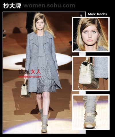 时尚解析:小马哥似乎在寻觅内心的平静,采用代表沉稳的灰色调。不过就算如他也不能摆脱自己,Marc Jacobs新系列中依稀可见他早年车库摇滚那场秀的中性风格。
